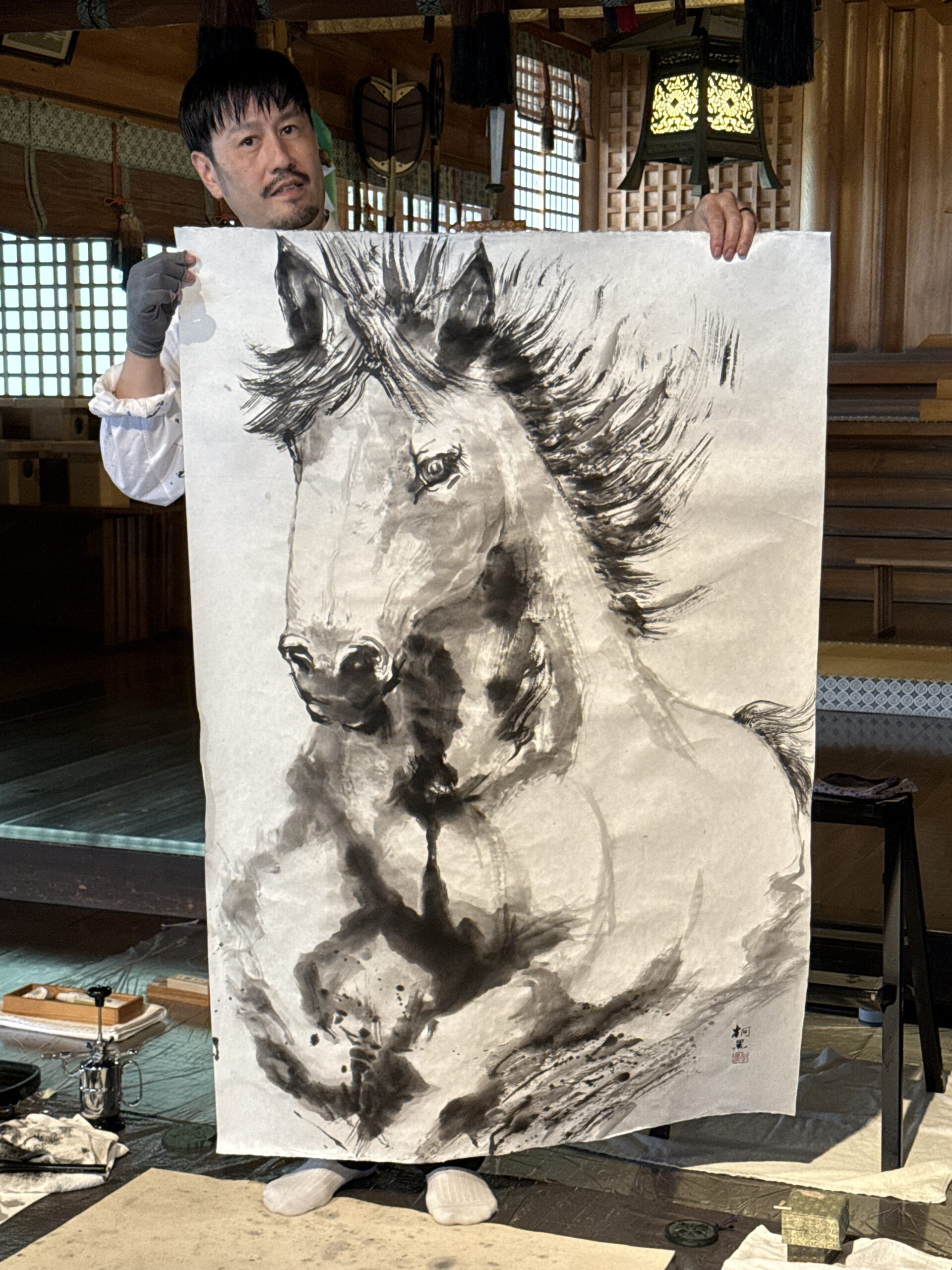 飛騨護国神社さんでおこなわれた終戦80年臨時みたま大祭で水墨画実演奉納させて頂きました。