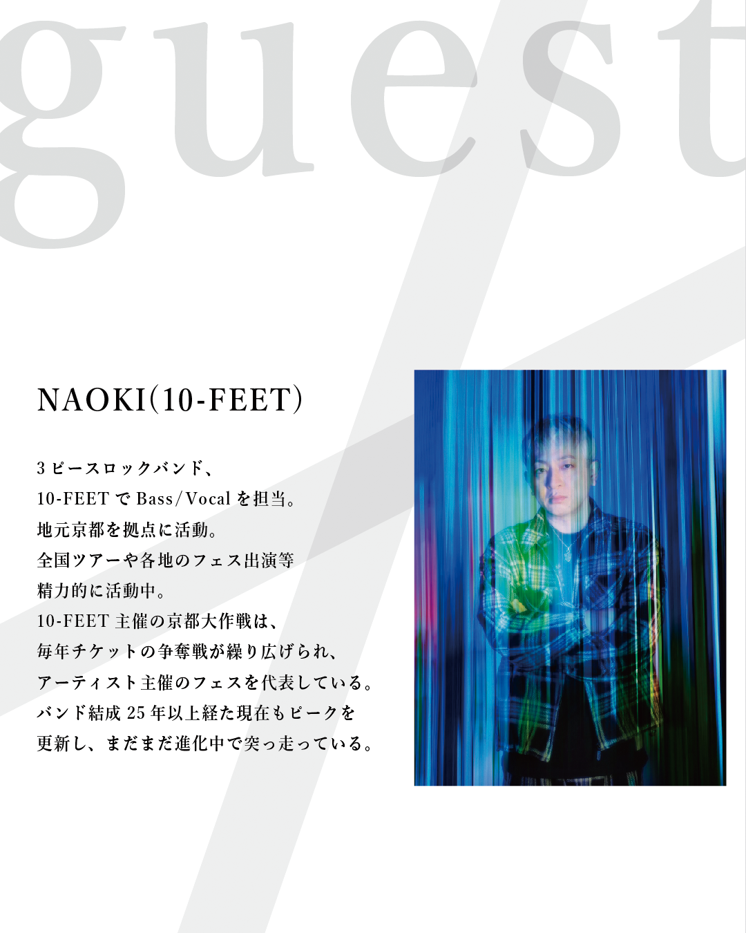 ゲストにはNAOKIさん(10-feet)、冠徹夜さん(THE冠)をお招きし京都出身の3人でお 話しさせて頂きます。